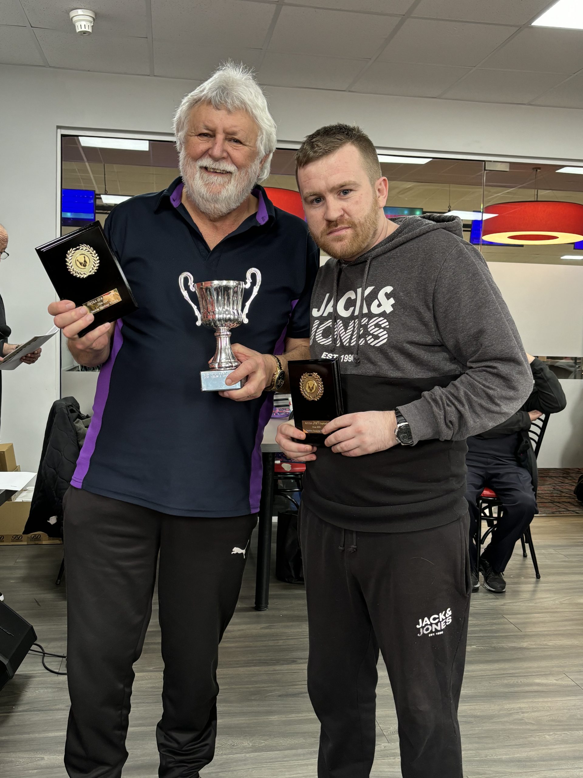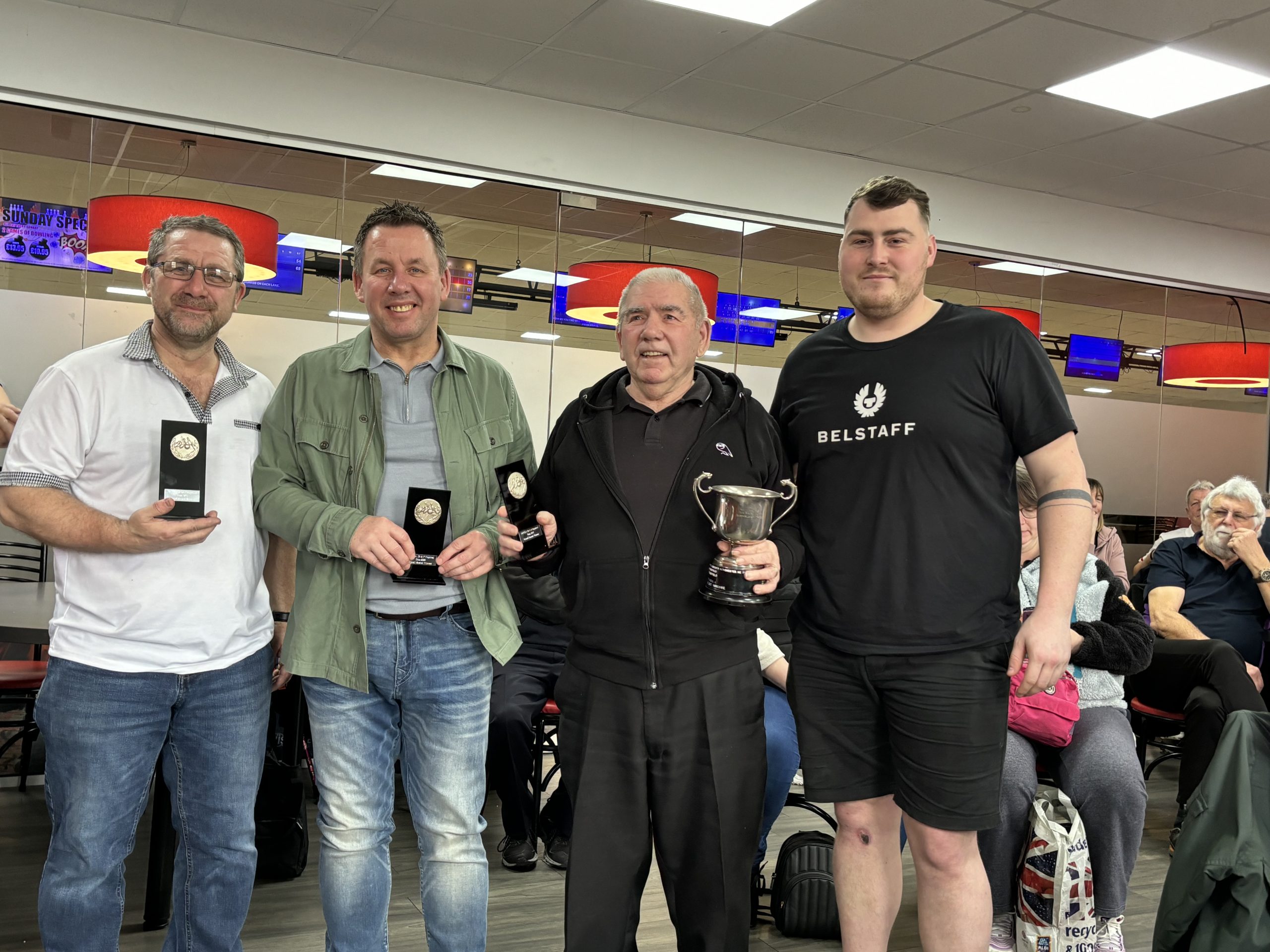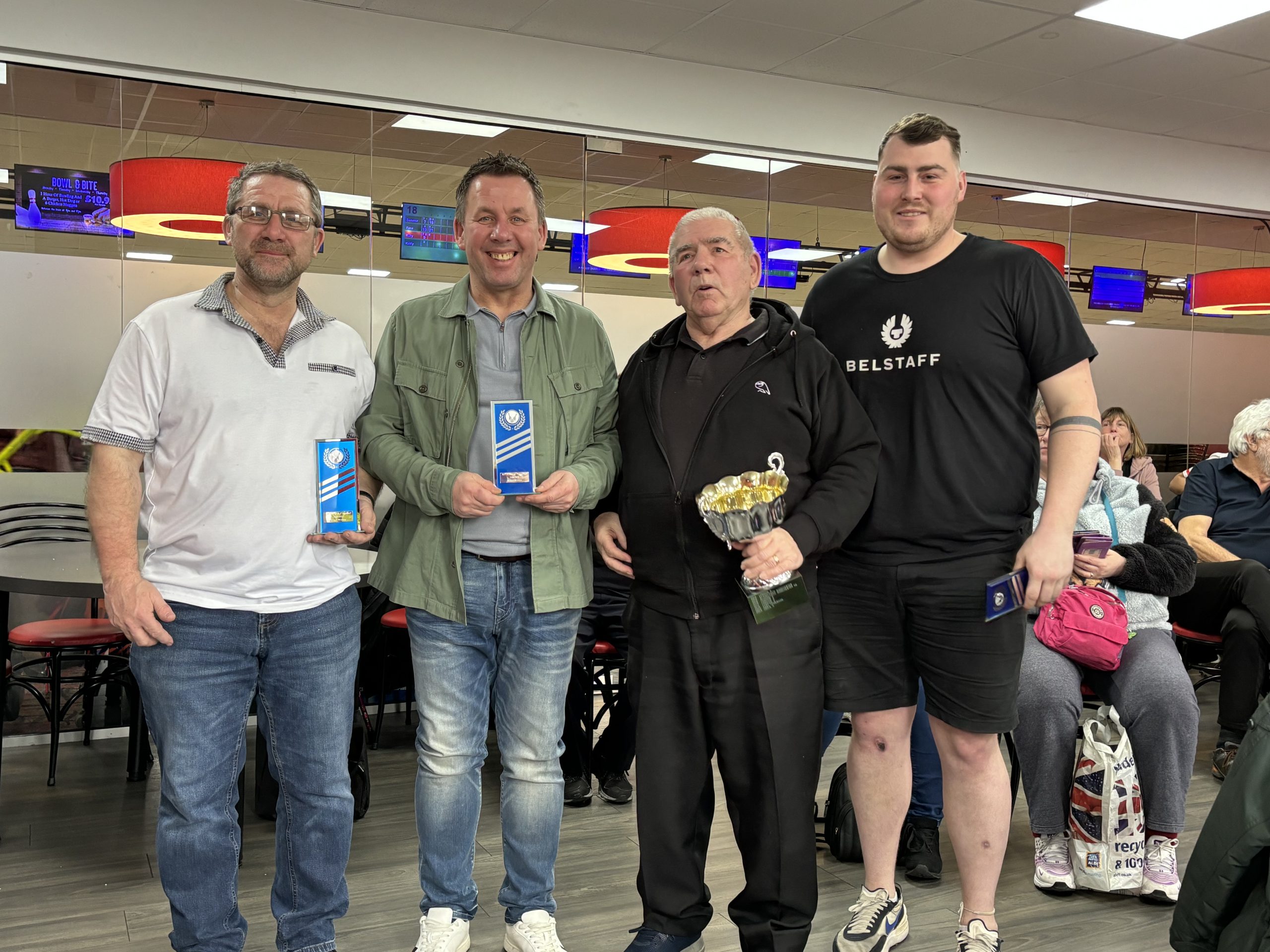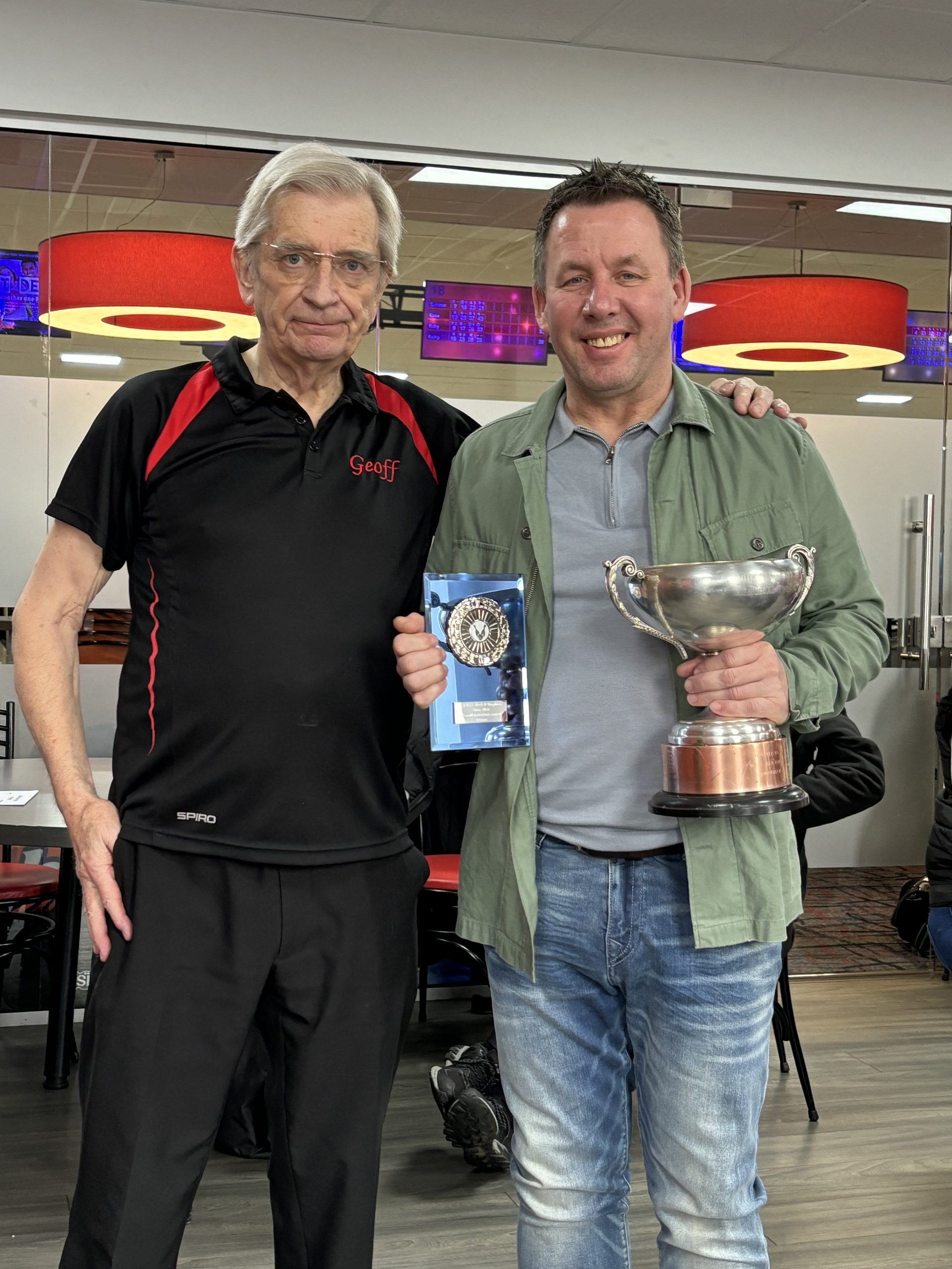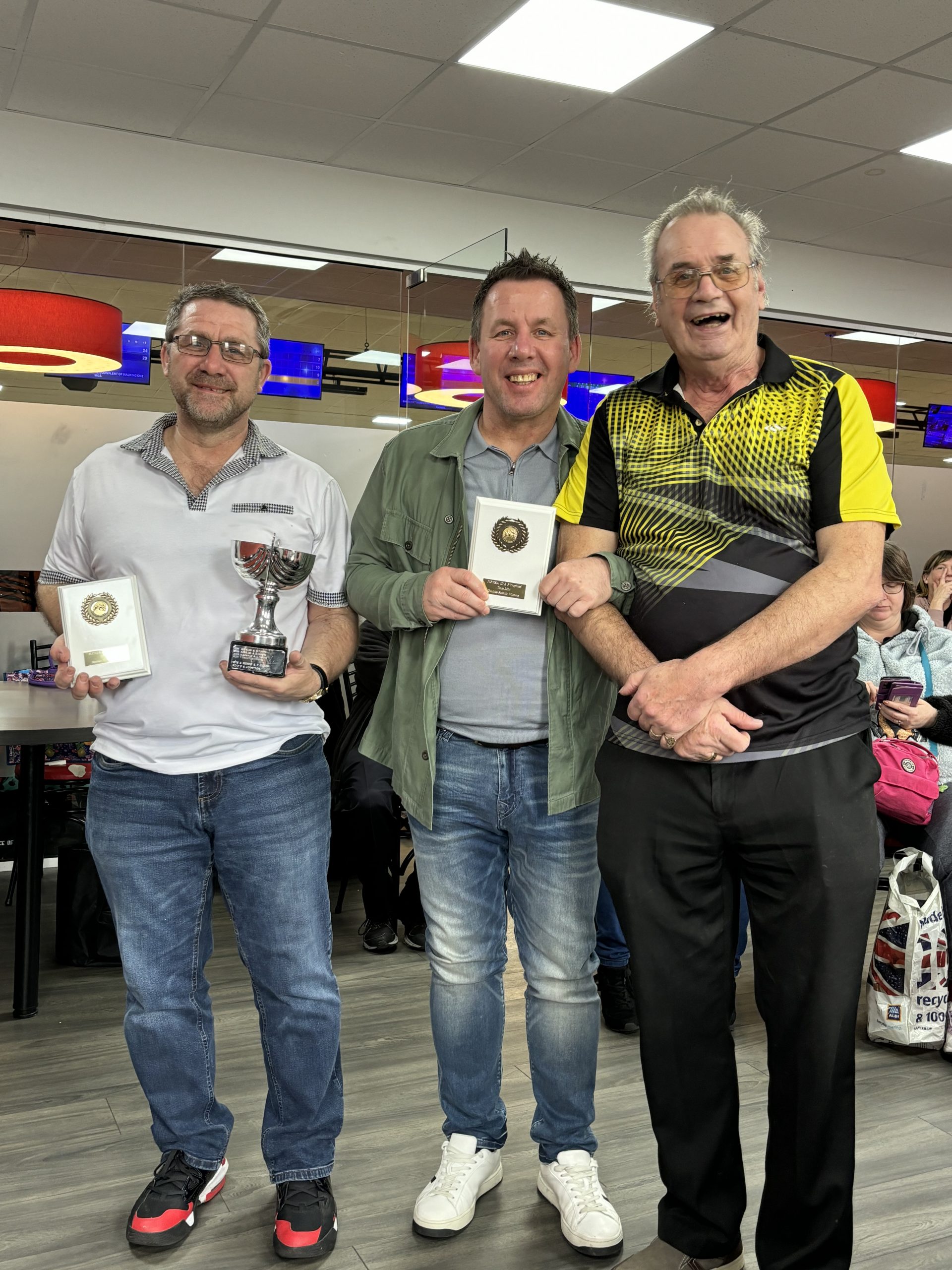 We opened with the doubles on Saturday with the handicap with Trevor and Dale Dixon seeing Bradford retaining the trophy with 1265 ahead of Paul Dicken and John Livsey of Stagecoach Manchester on 1212. The scratch trophy was taken by Mark and Paul Simpson of Sheffield 1161 from Jim Lumb and Ferenc Szlavik of Leeds.