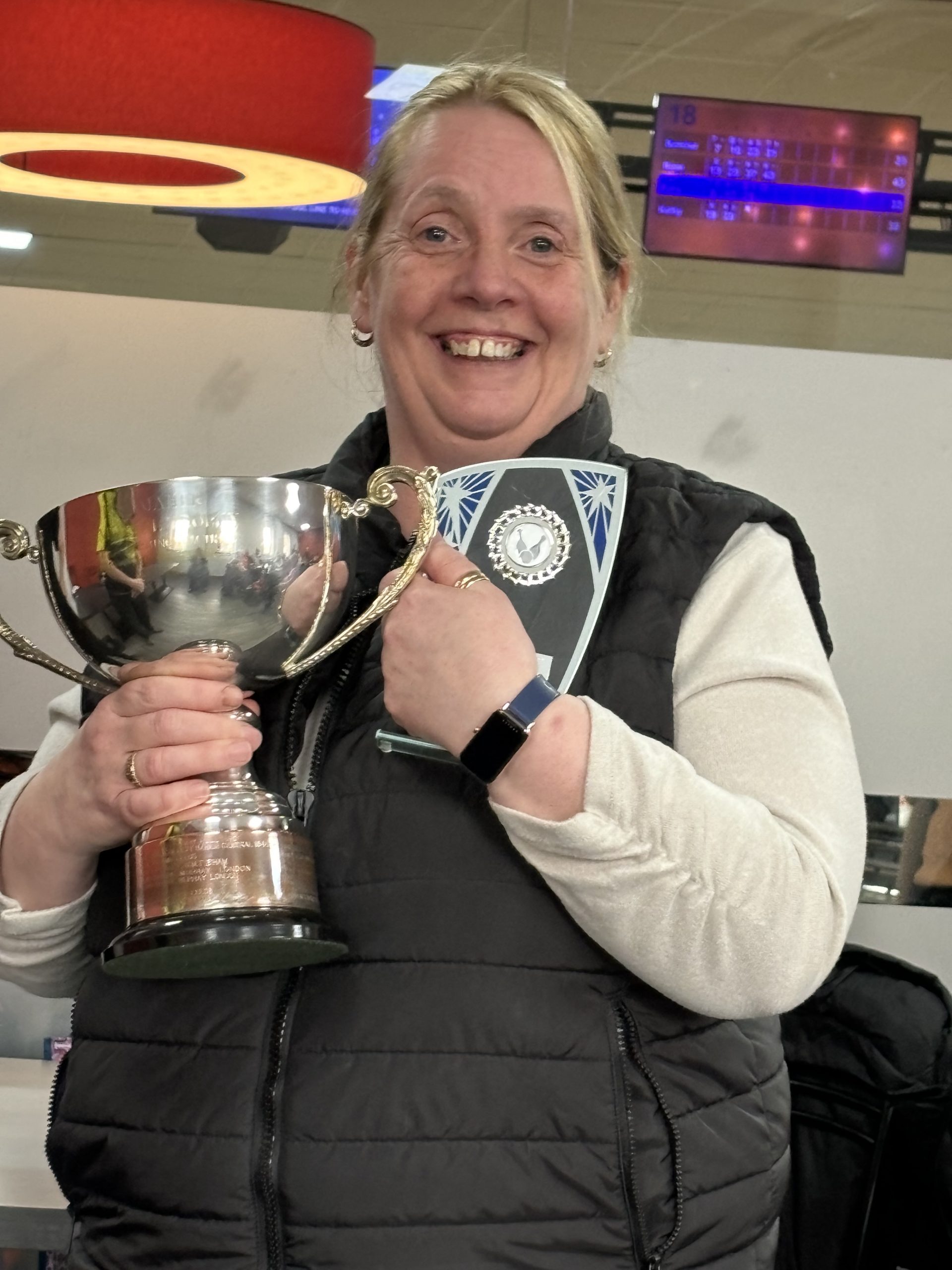 The Ladies overall handicap was won by Sam Shenton of Brummies A with 1920 ahead of Karen Day also of Brummies A. Scratch went to Sue Szlavik bowling for Black Country on 1526 ahead of Sandra Tyler of East Yorkshire B with 1157